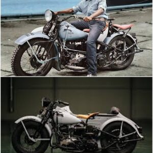 A WWII-Era U.S. Navy 1943 Harley-Davidson Knucklehead Motorcycle with an Unknown Sailor in the Saddle: A Symbol of American Resilience and Military Innovation…