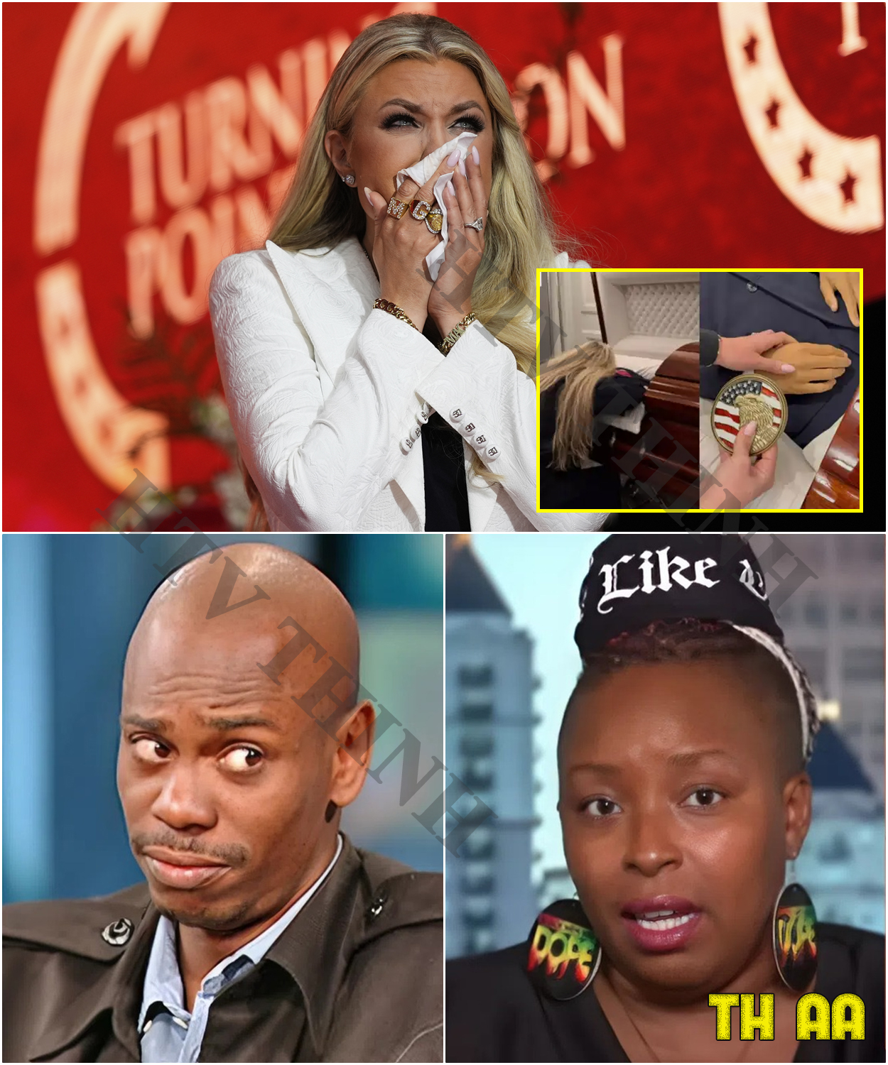 The controversy took a dramatic turn when Dave Chappelle and Jaguar Wright publicly challenged the authenticity of Erica Kirk’s mourning. Both artists, known for their candid and often controversial commentary, accused Erica of staging her grief as part of a broader strategy to consolidate power.