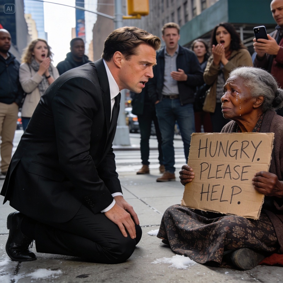 A woman sat on the sidewalk near a subway entrance, wrapped in an old brown coat that looked too thin for the season. A cardboard sign leaned against her knees, the words written in uneven letters: “HUNGRY. PLEASE HELP.”