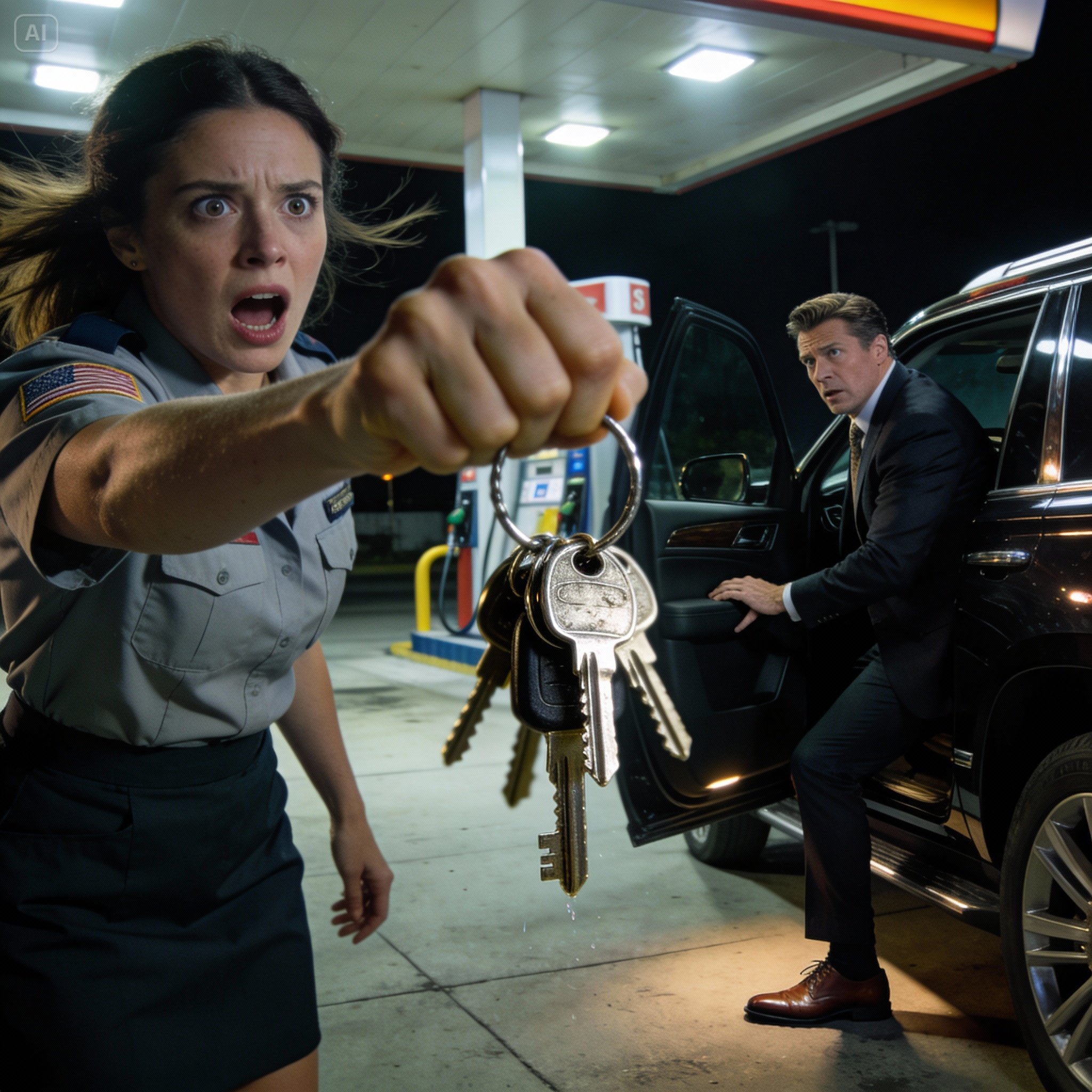 One quiet evening, close to midnight, a black luxury SUV pulled up to the pump. The vehicle gleamed under the station lights—expensive, powerful, unmistakably out of place. Emily stepped outside to assist, as company policy required.