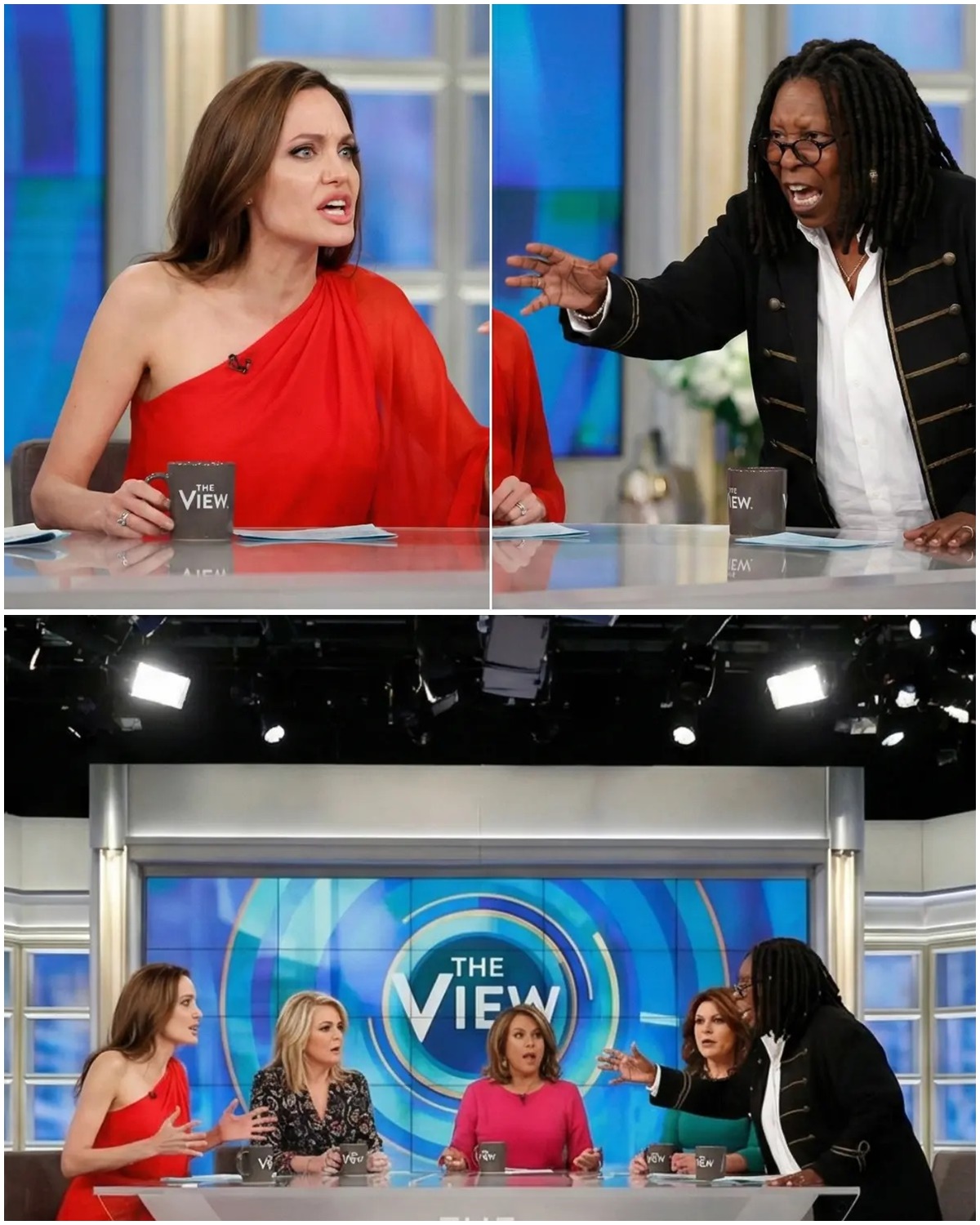 Whoopi Goldberg, a veteran of television and a master of controlling situations, was sitting to Jolie’s left. She had seen it all over her decades in show business, but what unfolded that day was beyond anything she could control. The conversation had taken an unexpected turn, and it was clear that Jolie was becoming visibly frustrated. But it wasn’t just the actress’s frustration that changed the dynamic—it was the escalation from the panelist who wasn’t backing down.