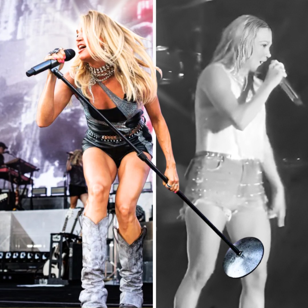 Her hair plastered to her face, water rolling down her leather jacket, she looked less like a country superstar and more like a warrior gearing up for battle. And when she leaned into the mic and belted the first line, her voice cut through the storm like a lightning strike.