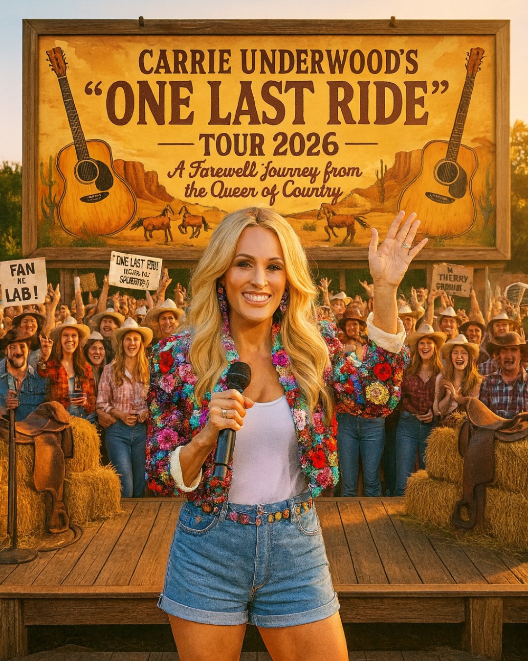 Carrie Underwood, the undisputed queen of country music, has officially announced her farewell tour—2026’s One Last Ride—and the country music world has been sent into a frenzy. For over a decade, Underwood has been the gold standard of both vocal power and stage presence, earning countless awards, accolades, and the unwavering devotion of millions of fans across the globe. But now, the woman who brought us anthems like “Before He Cheats,” “Jesus, Take the Wheel,” and “Blown Away” is preparing for her final curtain call.