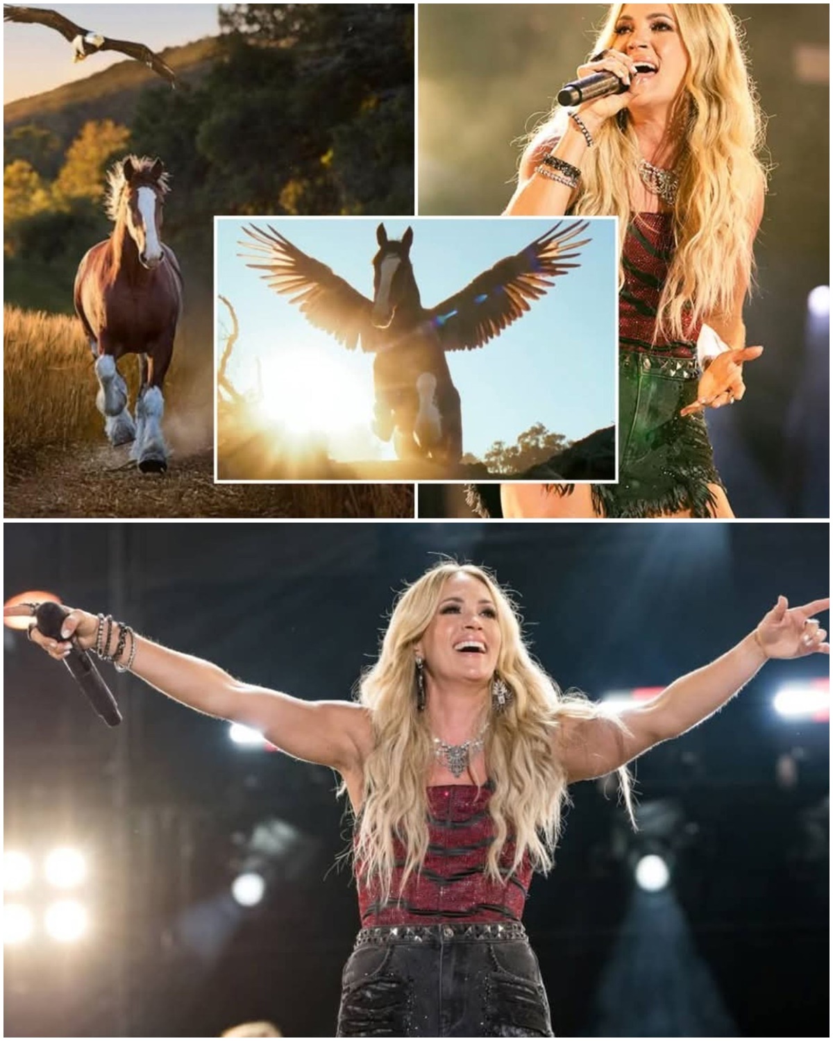 As Carrie sang, the visuals refused to rush. The eagle didn’t soar immediately. The horse didn’t rise triumphantly. There was no instant payoff. Just effort. Just struggle. Just the honest work of becoming what you’re meant to be.