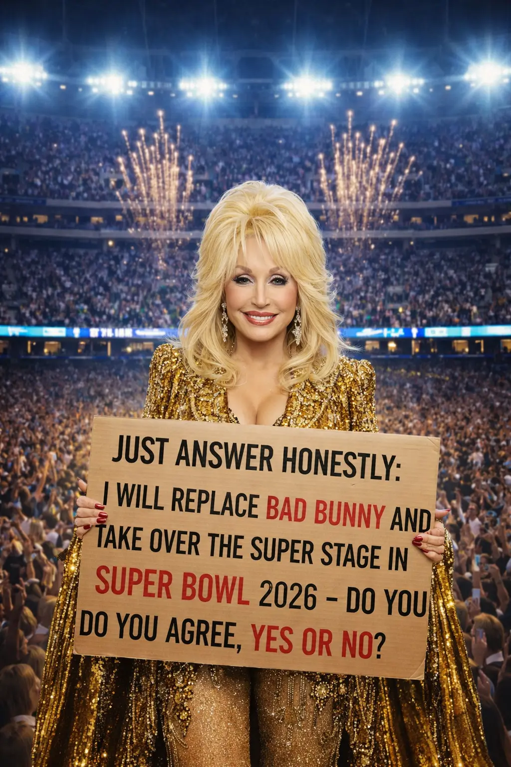 Santa Clara, California — Just weeks before America gathers for the biggest television moment of the year, a familiar, warm voice from Nashville has cut through the noise and landed like thunder. Dolly Parton didn’t call a press conference. She didn’t stir scandal. She didn’t attack anyone by name. But when she finally spoke about the Super Bowl halftime show — and the growing dominance of global pop spectacle — the message was calm, firm, and impossible to shake.