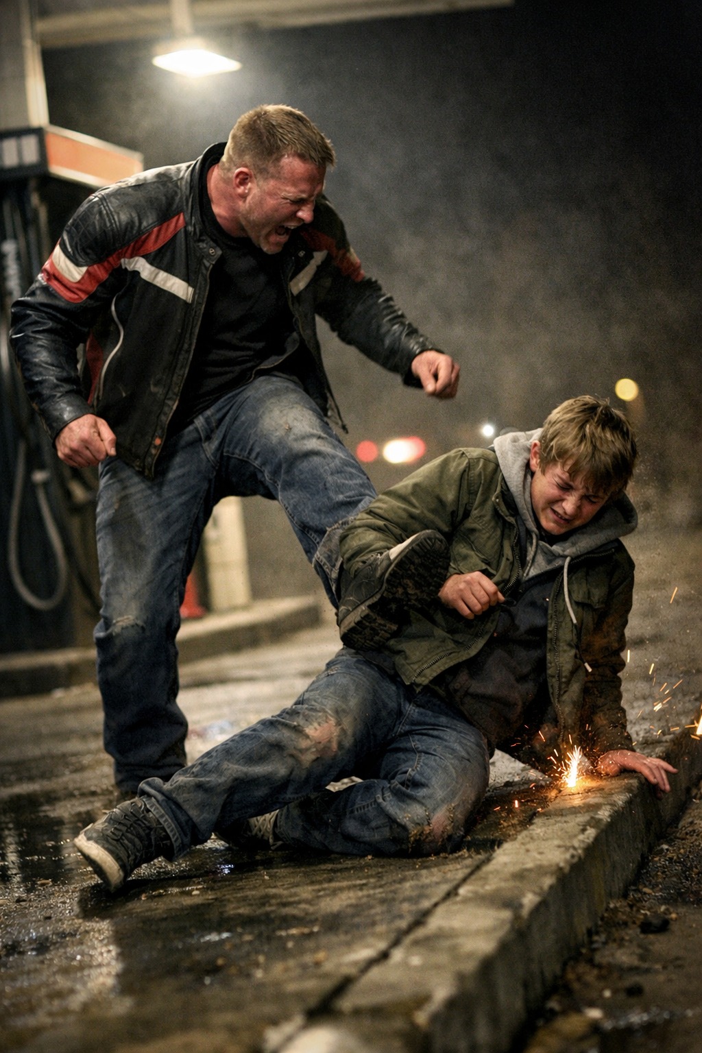 He Was a Starving Seventeen-Year-Old Hiding From the Cold at a Flickering Gas Station, and the Man Screaming in a Biker Vest Looked Like Death Itself —