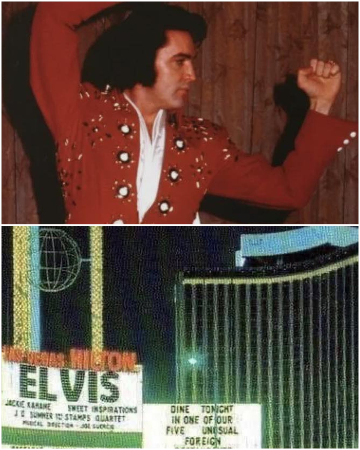 On January 18, 1972, Elvis Presley stepped off a plane in Las Vegas and into a chapter of music history that would once again redefine what it meant to be a live performer. The destination was the Las Vegas Hilton, a building that had already become inseparable from Elvis’s legacy. What followed was not just another residency—it was a sustained eruption of energy, discipline, vulnerability, and star power that kept the city buzzing night after night.