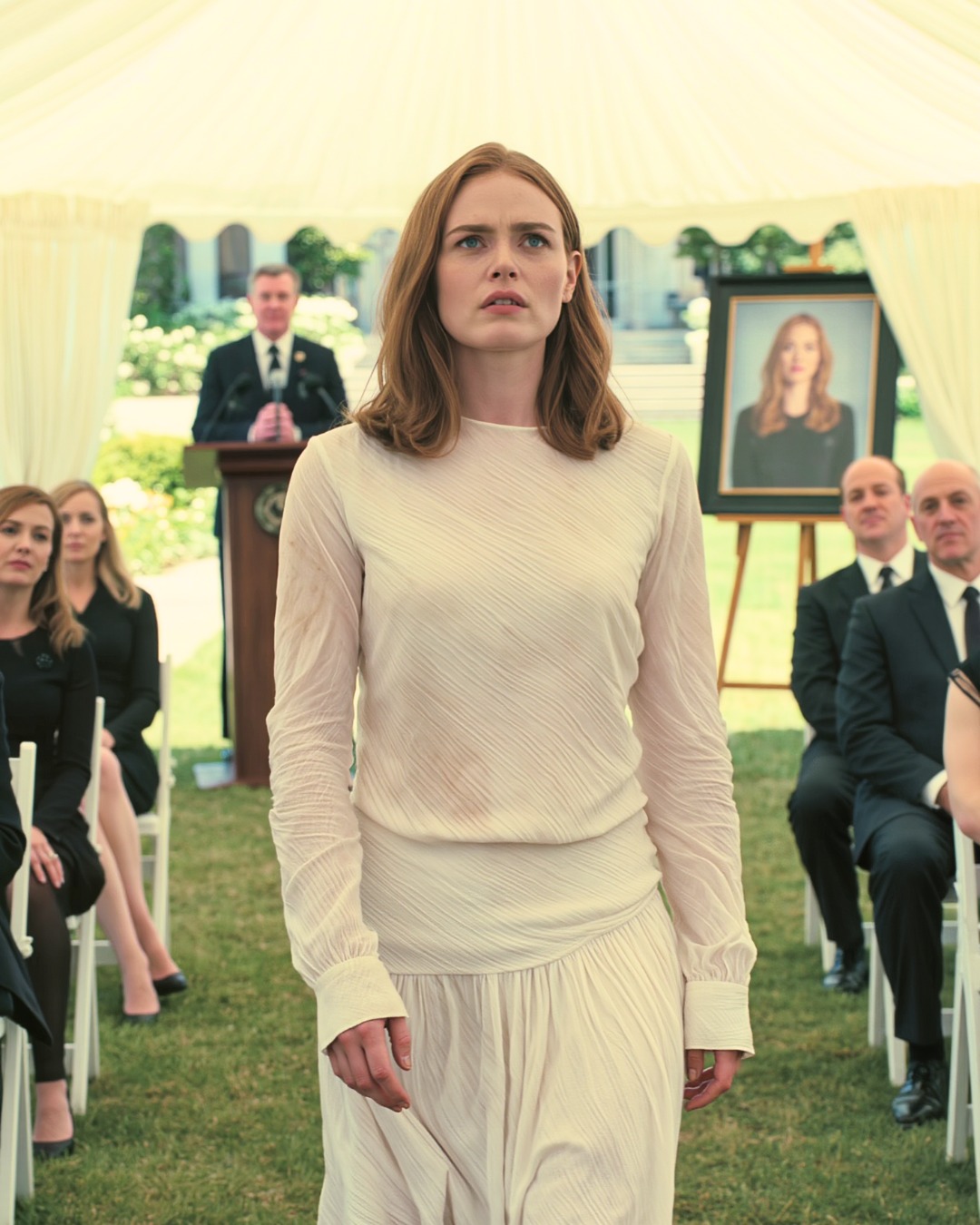 We toasted with champagne. I woke up alone, 22 miles offshore, GPS smashed, lifeboats gone. By the weekend, they held my memorial and Dad announced he’d ‘carry on my legacy.’ I let him finish his speech—then I walked in, salt-stained dress, flanked by two men in suits… carrying the ‘gift’ I’d sent him….