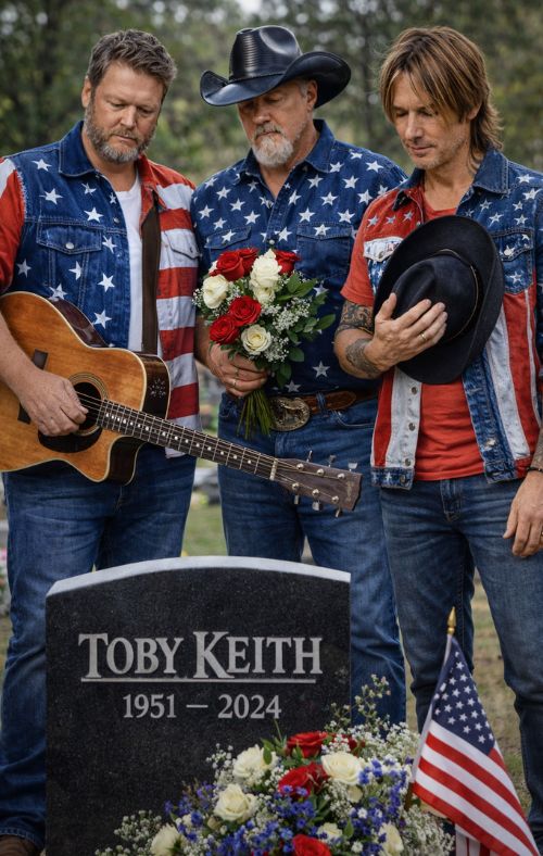 It was an evening unlike any other, not one marked by the flashing lights of a stage, nor the loud applause of a cheering crowd. No red carpets. No press conferences. No cameras capturing every tear or every note. Instead, it was just three men — Blake Shelton, Keith Urban, and Trace Adkins — standing on the soil of Norman, Oklahoma, their hometown, paying tribute to one of the greatest country artists of all time, Toby Keith. But this was no ordinary performance. This was a moment of raw emotion, a private farewell, a song sung not for the world, but for the man who had once stood beside them on that same stage.