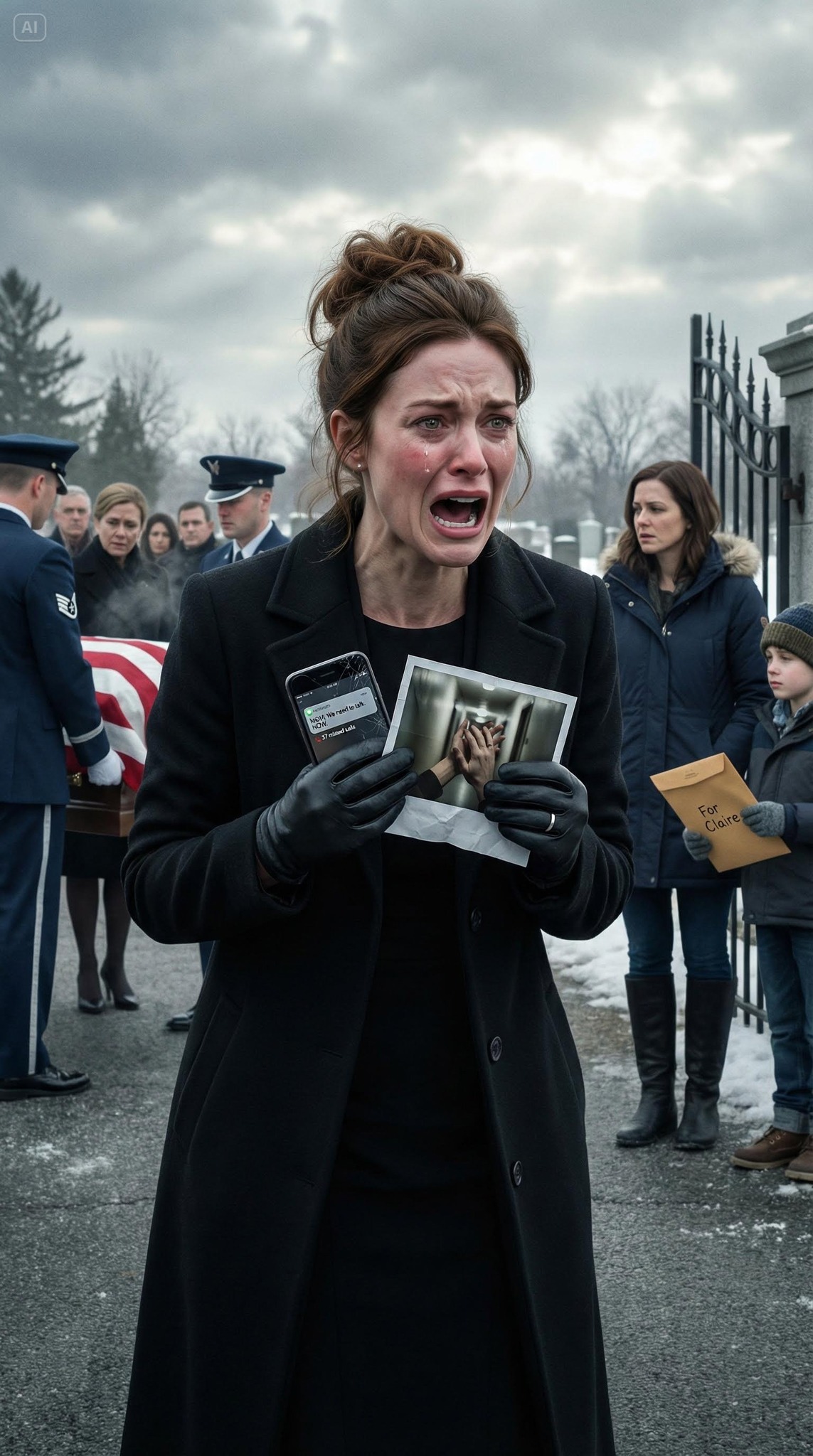 I didn’t look. I kept my hands folded until the honor guard eased the straps and the casket began to lower. That was when my phone went wild in my pocket, buzzing nonstop like an alarm.