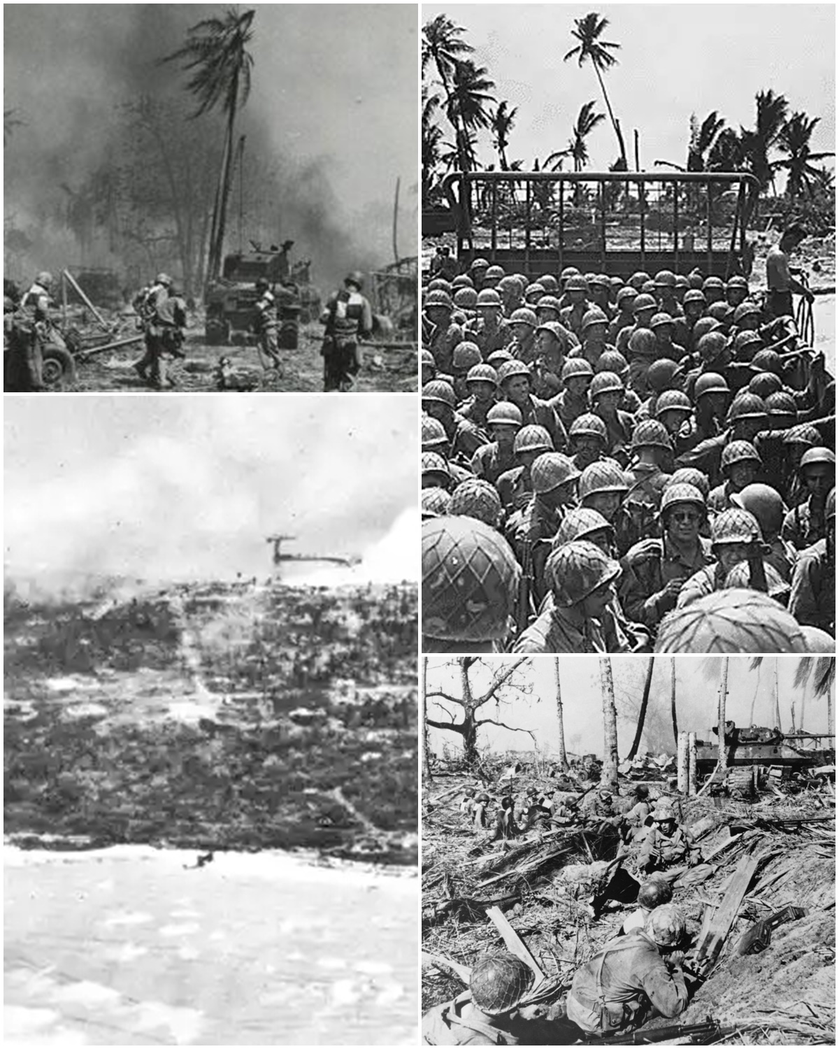 Once ashore, American soldiers faced a battlefield unlike anything they had trained for. The islands were no longer recognizable landscapes. They were flattened wastelands of shattered coral, burning debris, and collapsed fortifications.
