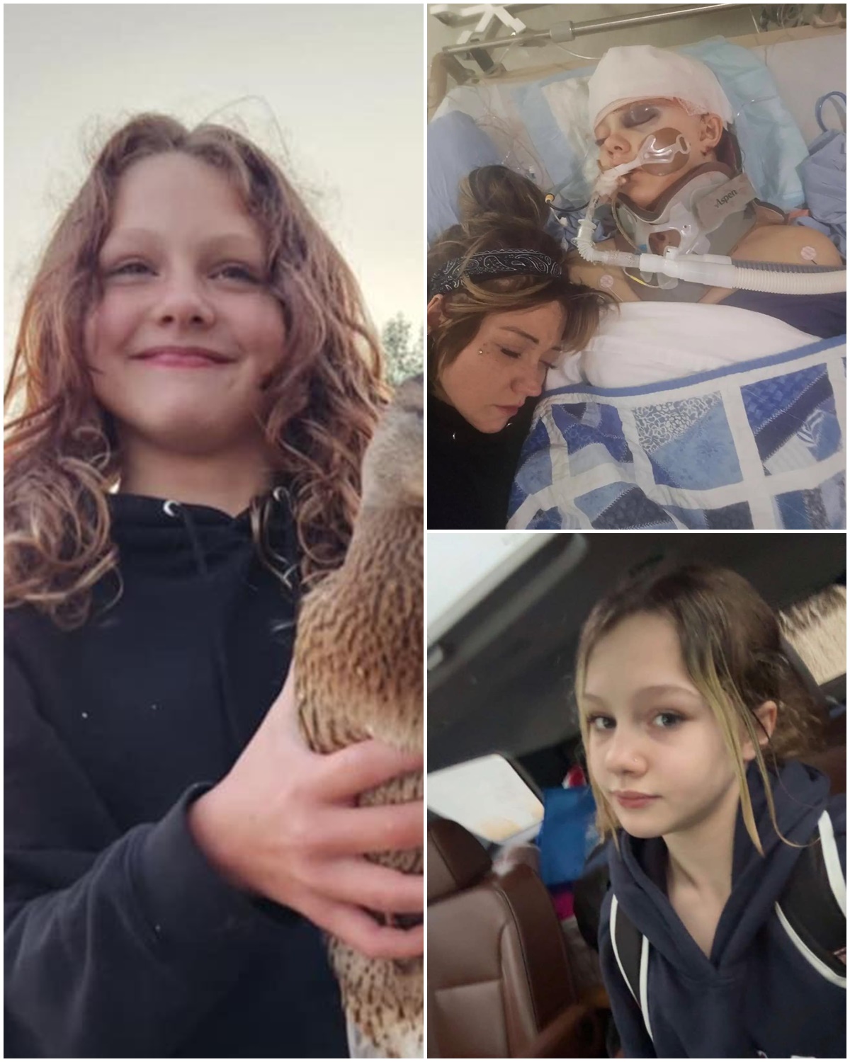 Her aunt, Krysta Hunt, says Maya remains in extreme critical condition. Surgeons operated to address a brain bleed, and doctors continue to monitor significant swelling. The prognosis is uncertain. The first night was described as critical — physicians warned the family she might not survive.