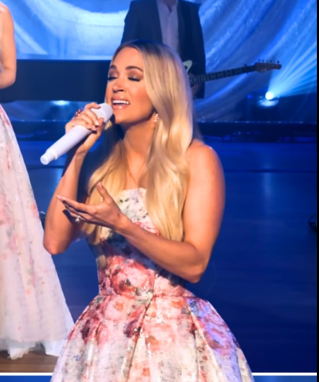 By the second chorus, phones lowered. Heads bowed. Some stood, some knelt, some simply wiped tears as Carrie’s voice soared upward through the rafters like a prayer set free.