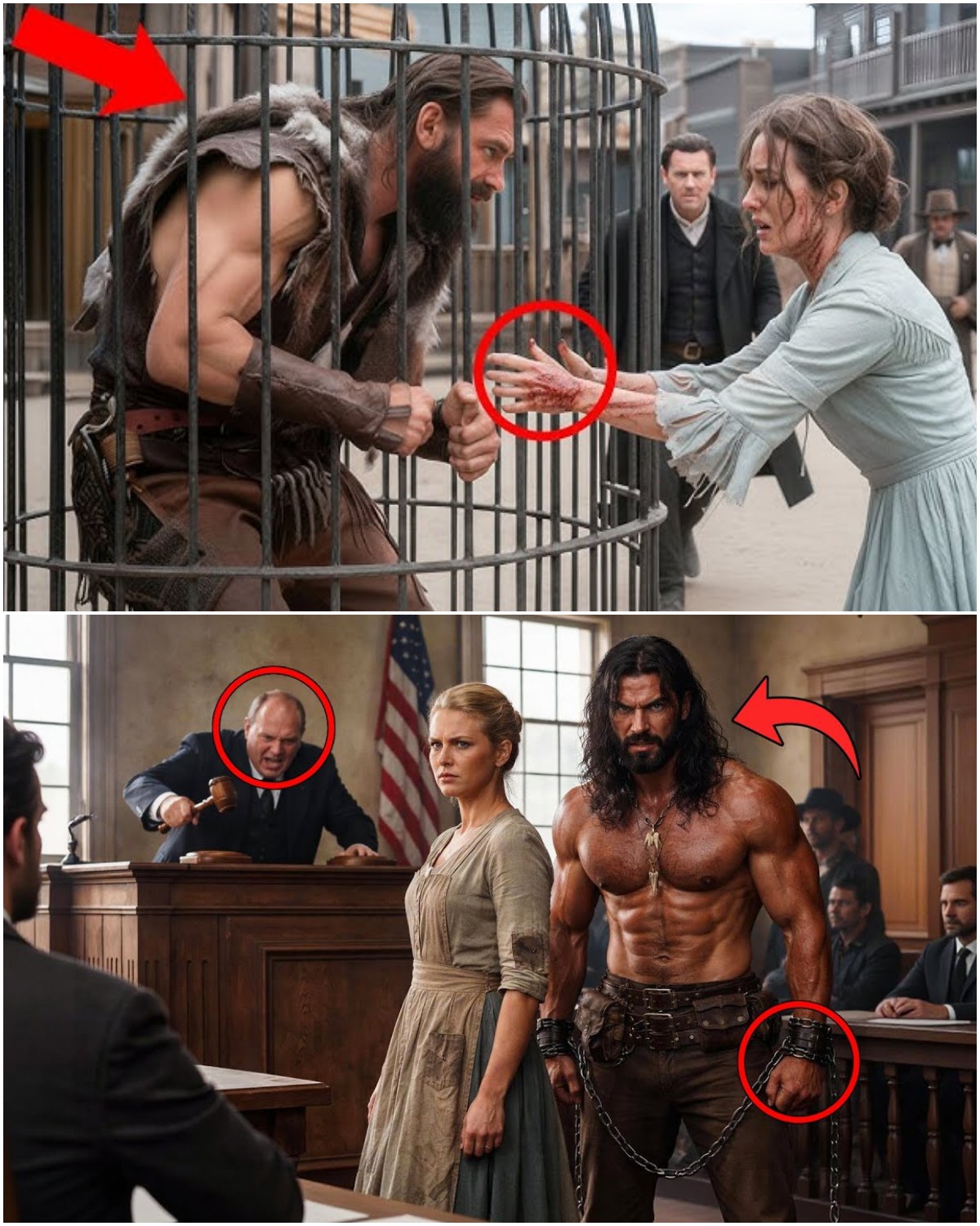 Jeremiah Conincaid, known in the darker corners of the territory as “Grizz,” loomed like a thundercloud. He stood six-foot-four, a mountain of buckskin and corded muscle, smelling of pine resin and the raw, iron scent of dried blood. He had been hunted down from the Absaroka range by a six-man posse; two were still under the doctor’s care, and Jeremiah’s own knuckles were split to the bone. His eyes, a startling, glacial blue, burned with a homicidal light that made the bailiff keep his hand perpetually on his holster.
