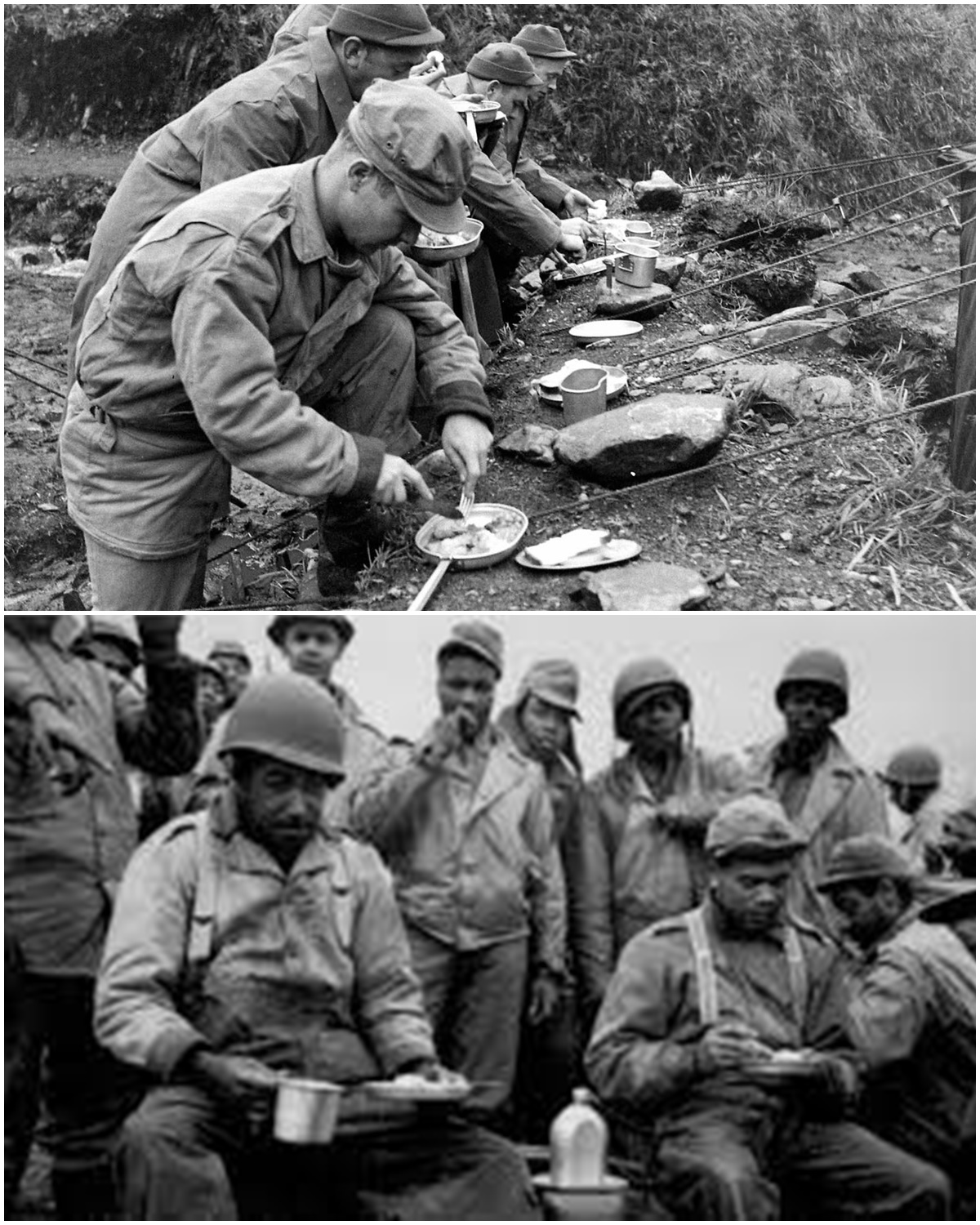 Living conditions were rough. Many soldiers were stationed in makeshift tents, quonset huts, and crude barracks. Supplies were limited, and the men often had to make do with what little they had. In such a harsh environment, morale could easily dip, making it vital for soldiers to find small comforts and moments of levity to maintain their focus and resolve. This is where the simple act of eating chow together became an important ritual. Meals served as both a break from the grind of military life and a reminder of the comradeship that sustained them through difficult times.