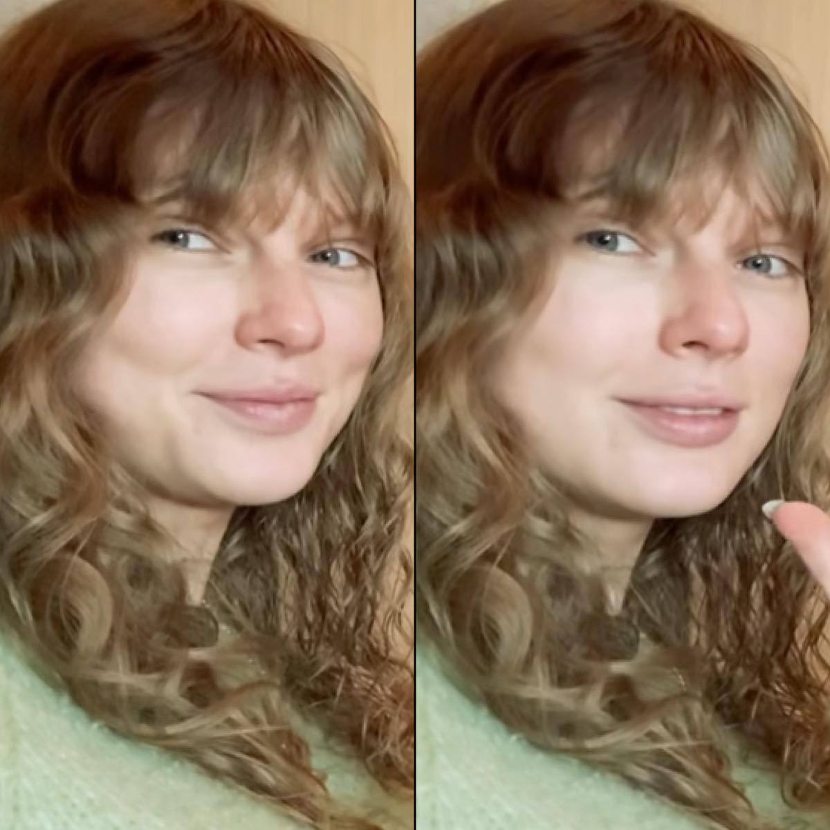 Just Taylor—bare-faced in the frame—letting the internet see what it almost never gets to see: the version of her that usually lives between the polished moments, in the soft margins where the work actually happens.