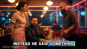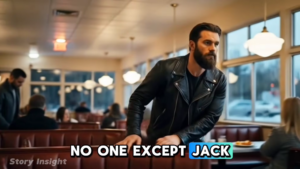 The diner fell silent, all eyes on the confrontation. Jake stepped forward, a fierce protector ready to defend.