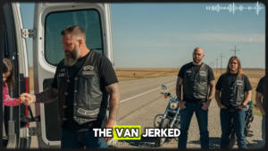 “Everything’s going to be okay now,” he reassured her, glancing back at the van where the man was now trying to flee. But the bikers were ready.