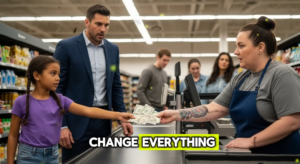 âExcuse me, sir,â she said, her voice steady despite the weight of the moment. âI can help you pay.â