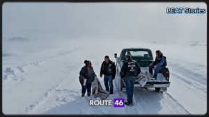The snowstorm raged fiercely, swallowing Route 46 in a blinding whiteout, transforming the world into a desolate winter wasteland.