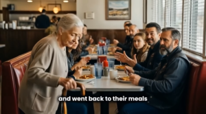 They laughed, shared food, and even toasted to the memories of loved ones lost, their laughter echoing through the diner.