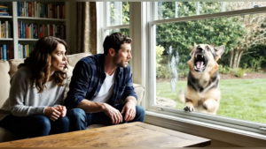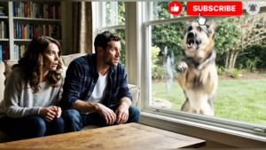 She turned to see a German Shepherd, its coat glistening in the morning sun, tapping gently at the glass with its paw.