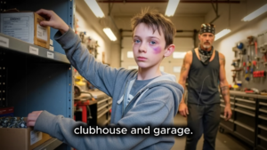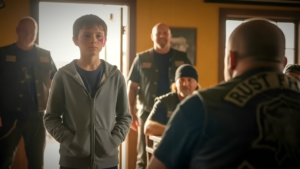 The door of the Rust Fangs MC clubhouse creaked as twelve-year-old Noah pushed it open, revealing a world that smelled of leather, gasoline, and something else—something raw and unfiltered.