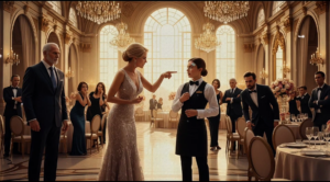 As the night unfolded, Mia served the table with grace, her heart racing as she caught glimpses of the powerful men surrounding her.