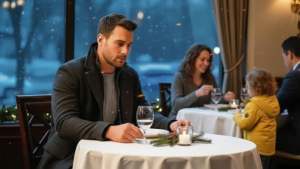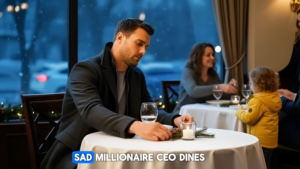 In the heart of the city, where twinkling lights adorned every corner and festive music filled the air, a lonely millionaire CEO named Jonathan sat at a lavishly set dining table.