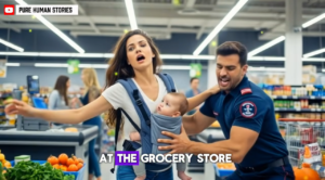 Among the chaos, a young woman named Emily hurried through the aisles, her baby cradled in her arms.