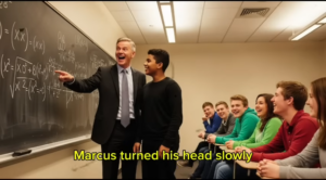 As Professor Thompson scanned the room, he spotted Marcus and smirked.