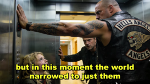 The biker’s eyes narrowed as he assessed her, and for a heartbeat, the world outside faded away.
