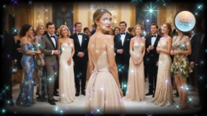 Dressed simply in a modest gown that contrasted sharply with the extravagant outfits surrounding her, she felt the weight of judgment in the air.